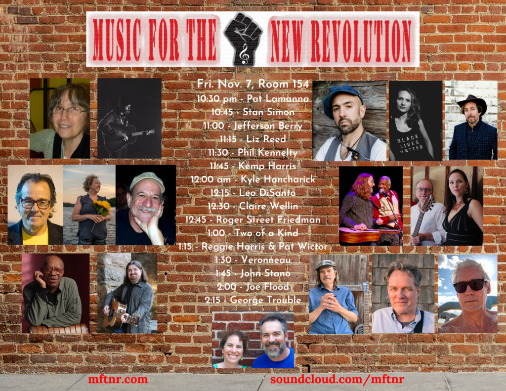 We will be hosting a Music for the New Revolution showcase at the 2025 NERFA Conference, on Fri., November 7 from 10:30 PM to 2:30 AM ET, with lots of excellent musicians. We will also make the showcase available via livestream on YouTube at this link: https://youtube.com/live/SbYe-Lk-zJM?feature=share (and the video will be available to view after the showcase is over).